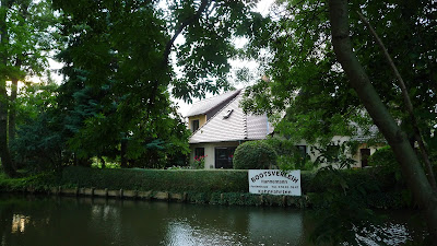Nice houses border the waterside.